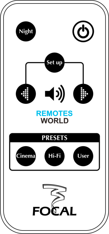 Mando a distancia de repuesto FOCAL PROFILE SW904 con todas las funciones del original.