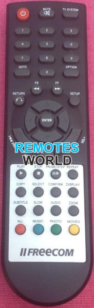 Mando a distancia de repuesto FREECOM MEDIA PLAYER II con todas las funciones del original.