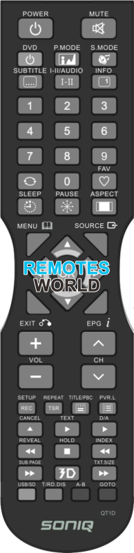 Télécommande de remplacement SONIQ QT1D avec toutes les fonctions de l'original.